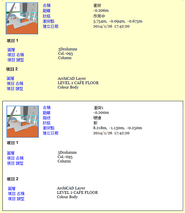 將建立一個 HTML 表格檔案,其中包含所有衝突,以及這些衝突之視點的 jpeg 和其詳細資料。選擇此選項時,將需要為檔案選取或建立一個資料夾,然後輸入 HTML 檔案的名稱。可以在 Microsoft Excel 2007 及更新版本中開啟和編輯 HTML 表格檔案。
