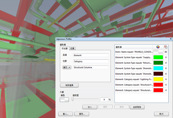 如果您使用第一個選取器取代整個模型的顏色,使其以 80% 的透明度灰顯,則其他顏色取代將更加突出。