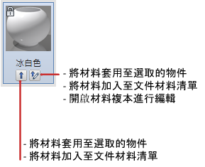 若要編輯設定,可以按兩下材料樣本或使用關聯式功能表。