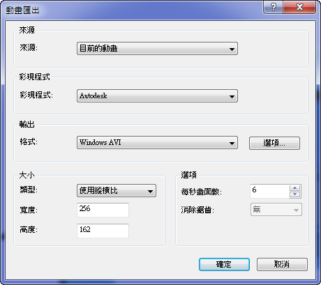 將動畫匯出為 AVI 檔案或一系列影像檔案