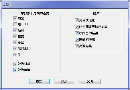 將比較兩個項目時發現的差異儲存為選集,以供稍後進行分析。該選集還將貼附註解,來更詳細地描述差異。