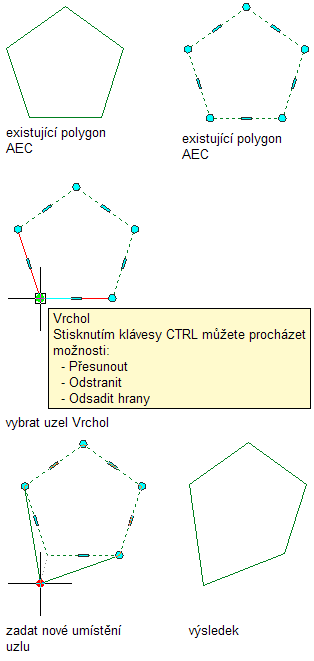 Přesunutí vrcholu polygonu AEC pomocí uzlu vrcholu