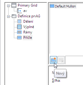 Po vytvoření definice příčle ji můžete přiřadit k jakékoliv příčli v sestavě dveře/okno.