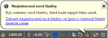 Když je zapnuto upozorňování, zobrazí se ve stavovém řádku bublina Upozorňování na nové hladiny, a to pokaždé, když je proveden některý je stanovených úkonů a během zpracování jsou zjištěny nové hladiny. Nové hladiny můžete zobrazit kliknutím na odkaz Zobrazit neuznané nové hladiny.