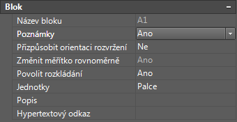 - Na paletě vlastností vyberte v části Blok hodnotu Ano pro možnost Poznámka.