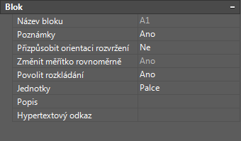 - Na paletě vlastností vyberte v části Blok hodnotu Ano pro možnost Poznámka.