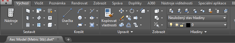V aplikaci AutoCAD Architecture představuje pás karet ústřední místo pro přístup k příkazům. Pás karet je rozčleněn do jednotlivých karet, které odpovídají obvyklým úlohám při práci s výkresy. K dispozici jsou 2 typy karet: