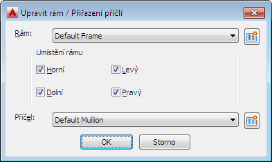| upravit příčel vybrané osnovy | Vyberte definici rámu a klikněte na tlačítko OK. |