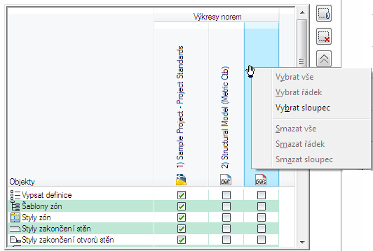 Odstraněním výkresu norem ze seznamu pouze odstraníte reference tohoto výkresu z projektu. Výkres není vymazán ze systému souborů.