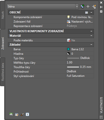 Jste-li správcem CAD, je vhodné se důkladně seznámit se strukturou systému zobrazení a Správcem zobrazení, abyste mohli podle potřeby upravovat a organizovat výchozí nastavení a zavádět vlastní normy zobrazení. Jakýkoliv uživatel však může provést rychlou změnu vzhledu objektu v konkrétním pohledu tím, že upraví hodnoty na kartě Zobrazení palety Vlastnosti.
