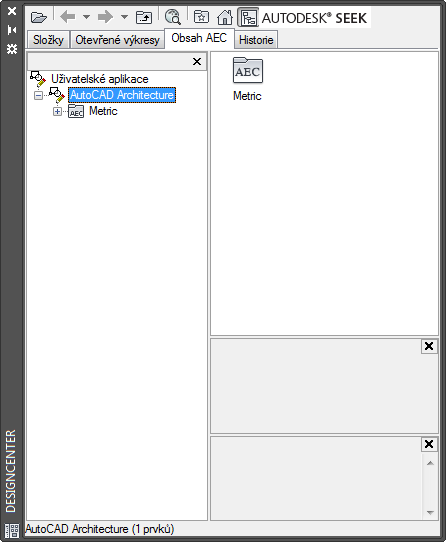 Obsah AEC (Architectural, engineering and construction) se skládá ze souborů s výkresy, architektonických symbolů, stylů objektů a rutin poznámek.