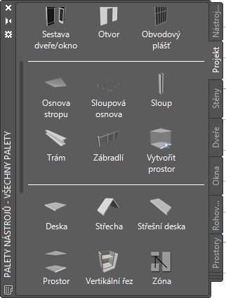 Uživatelské palety, vytvořené správcem CAD nebo jinými uživateli, mohou také obsahovat nástroje střechy s vlastnostmi, uživatelsky upravenými pro vaše projekty nebo kancelářské normy.