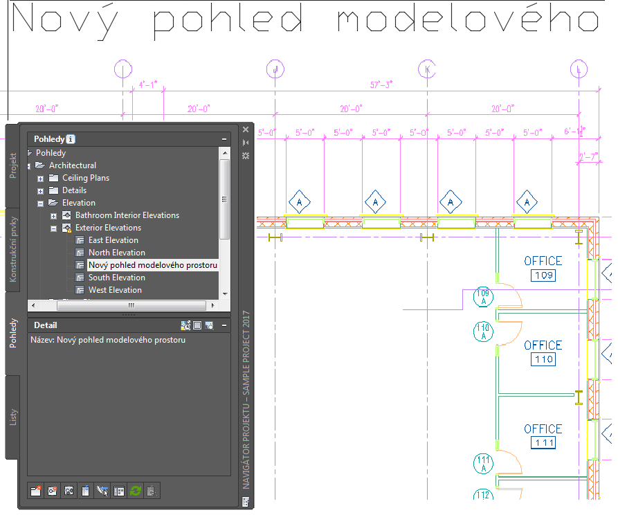 Nový pohled modelového prostoru je uveden pod výkresem pohledu, ze kterého byl vytvořen.