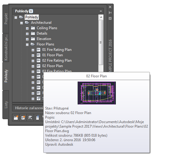 | zobrazit okno Náhled nebo Detail ve spodní části palety Navigátoru projektu | zvolte možnost Okno náhledu/detailu. |