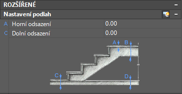 | určit tloušťku nášlapné vrstvy podlahy v horní části podlahy schodiště | zadat hodnotu pro Horní odsazení. |