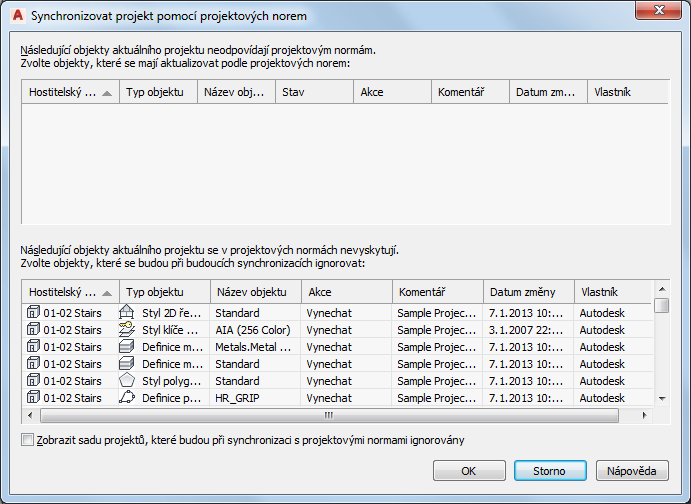 Poznámka: Pokud zvolíte tuto možnost, můžete zvolit zobrazení ignorovaných objektů v průběhu každé synchronizace.