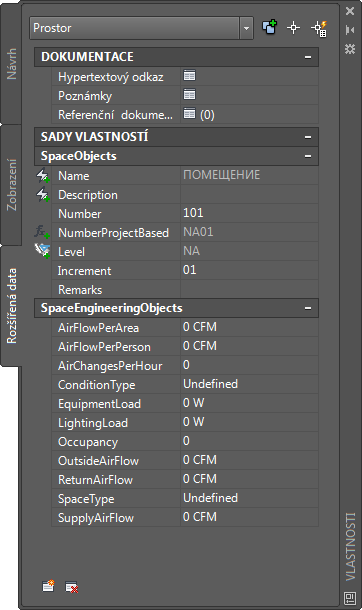 Otevřít výkres. Tato sada vlastností sestává ze stylů SpaceEngineeringObjects, ThermalProperties a ZoneEngineeringObjects.
