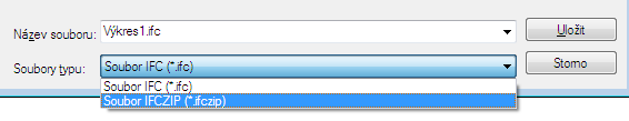 V dialogu Export souboru IFC vyberte v rozevíracím seznamu Soubory typu možnost Soubor IFCZIP (