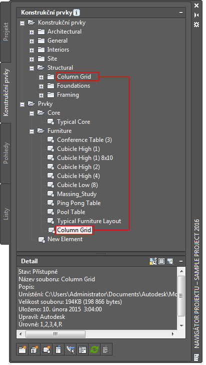 - Nepřetahujte konstrukční prvek do složky Prvky v programu Průzkumník Windows. Mohlo by to způsobit nekonzistenci mezi daty projektu.