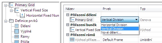 Poté, co definujete dělení, můžete je přiřadit k primární osnově nebo k vnořeným osnovám. Vložené osnovy se vytvoří jako přiřazení buňky pomocí volby Vložená osnova.