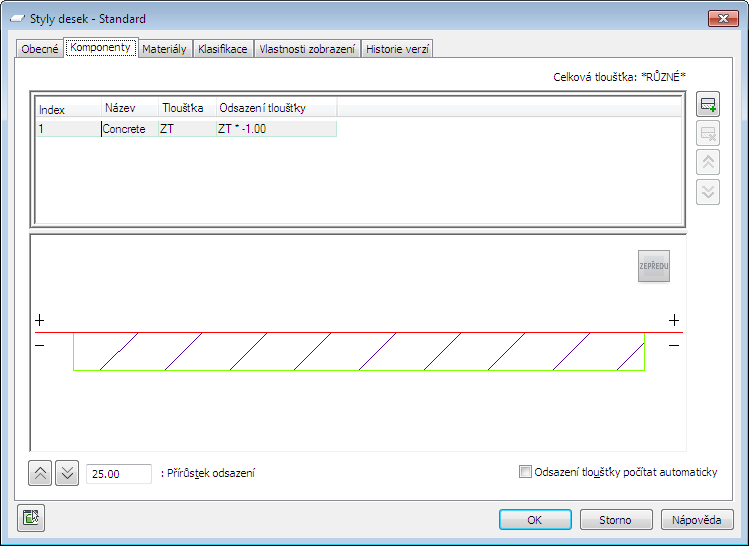 - Přidání nebo odebrání komponent desky nebo střešní desky a úprava jejich vlastností.