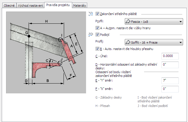 | použít podbití v jeho nakreslené velikosti | zrušte Automaticky nastavit podle hloubky přesahu. |