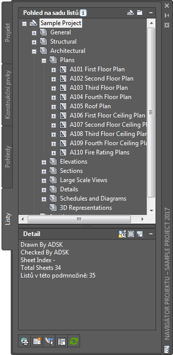 Sada projektových listů v Navigátoru projektu aplikace AutoCAD Architecture