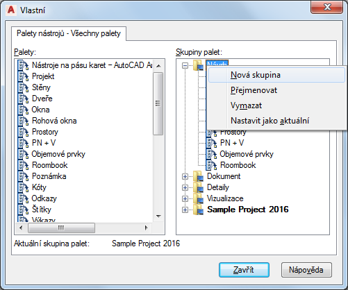 Tento postup slouží k vytvoření nové skupiny palet nástrojů.