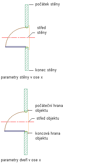 | měřit ke středu dveří | vyberte položku Střed objektu pro možnost K. |