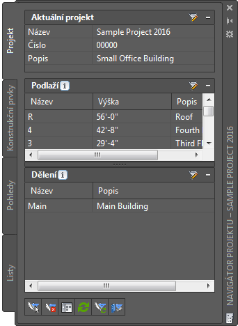 Karta Projekt v Navigátoru projektu je místo, kde se zadávají informace týkající se celého projektu.