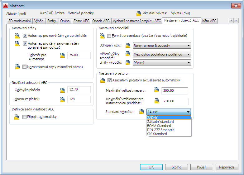 Metoda AecSpaceOffsetStandard.SetName() je implementována v základní třídě a nelze ji přepsat. Je třeba ji zavolat za účelem registrace názvu pro standard v konstruktoru třídy. Jedná se o název, který se zobrazí v seznamu dostupných standardů výpočtu plochy v aplikaci AutoCAD Architecture.
