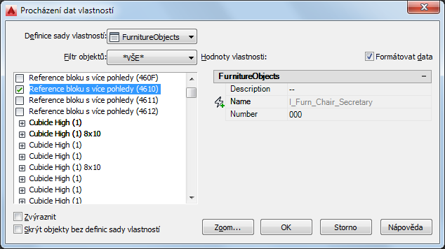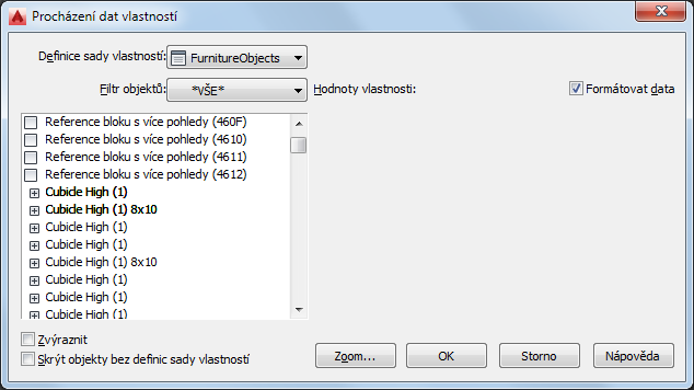 | nechat objekt ve výkresu zvýraznit, když vyberete sadu vlastností, která je připojena k objektu nebo k jeho stylu | vyberte možnost Zvýraznit. |