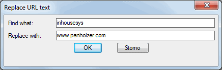 Vyhledá a nahradí zadaný textový řetězec v adrese URL používané v hypertextových odkazech, které jsou připojené ke všem vybraným objektům.