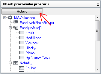V podokně Obsah pracovního prostoru klikněte na tlačítko Hotovo.