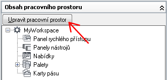 Nastavení aktuálního pracovního prostoru v editoru Upravit uživatelské rozhraní (CUI):