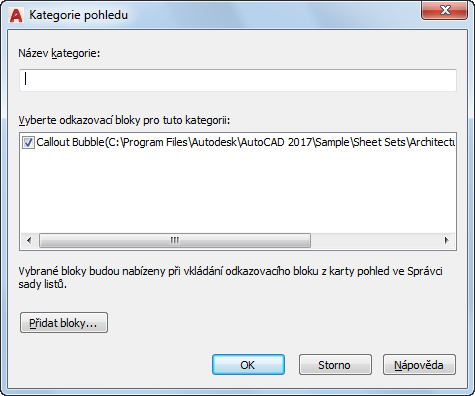 Umožňuje vytvořit seznam odkazovacích bloků vhodných pro aktuální kategorii pohledu.
