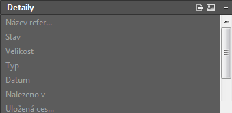 Pod podoknem Detaily / Náhled se nachází pole pro zobrazování hlášení, které poskytuje informace o určitých vybraných referenčních souborech. Vyberete-li jednu nebo několik vnořených referencí, zobrazí se informace týkající se příslušných referenčních souborů. Hlášení se zobrazí také tehdy, když se rozhodnete změnit název referenčního souboru.