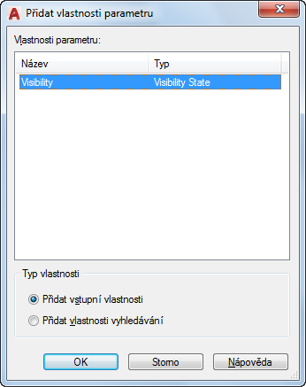 Zobrazí seznam vlastností, které ještě nebyly přidány do vyhledávací tabulky. Vyberte parametr a kliknutím na tlačítko OK jej přidejte do vyhledávací tabulky.