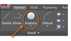 Případně můžete také v příkazovém okně zadat příkaz KRUŽNICE nebo jen zkratku KR a kliknutím vybrat požadovanou možnost. V takovém případě můžete určit středový bod, nebo můžete kliknout na jednu ze zvýrazněných možností příkazu, jak je znázorněno dole.
