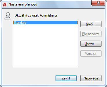 Přejmenuje aktuálně zvýrazněné nastavení přenosu.