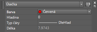 Pokud nejsou vybrány žádné objekty, nahoře zvýrazněné rozevírací seznamy zobrazují aktuální nastavení pro výkres. Pokud vyberete objekt, rozevírací seznamy zobrazí nastavení vlastností pro vybraný objekt.