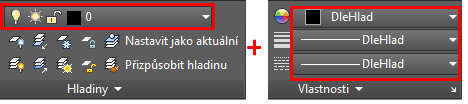 Na kartě Výchozí na pásu karet pomocí panelů Hladiny a Vlastnosti zkontrolujte nebo změňte nastavení pro většinu běžně používaných vlastností: hladina, barva, tloušťka čáry a typ čáry.