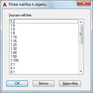 Pro přidání měřítek do tohoto seznamu použijte příkaz UPRSEZMĚŘ.
