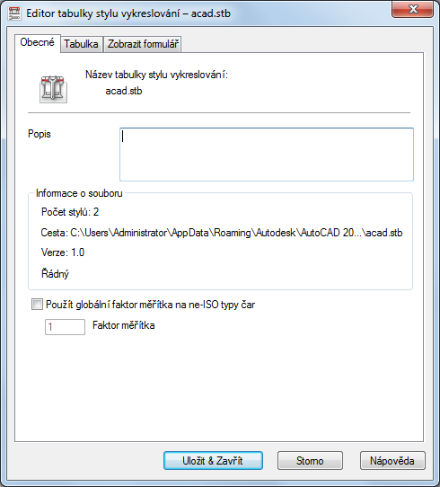 Upraví měřítko všech ne-ISO typů čar a vzorů výplně objektů ve vykreslovacím stylu, které jsou řízeny touto tabulkou stylů vykreslování.