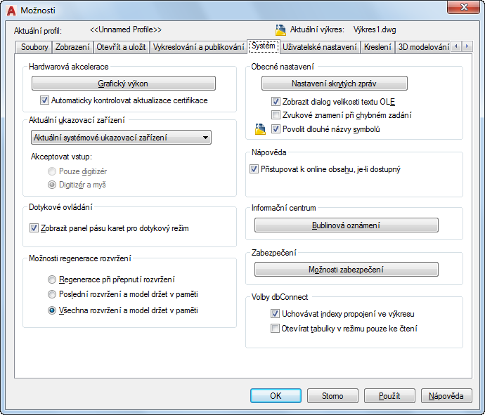 Některé výše uvedené možnosti nejsou v aplikaci AutoCAD LT k dispozici.