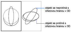 Není určeno žádné promítání. Příkaz ořízne pouze objekty, které se protnou s ořezávací hranou v prostoru 3D.