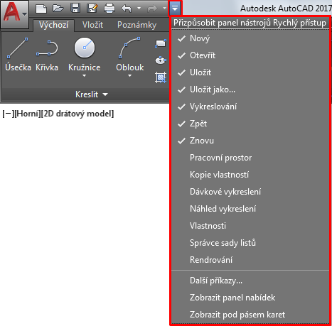 Na panelu nástrojů Rychlý přístup si můžete zobrazit často používané nástroje.