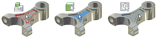 Nastaví příkaz tak, aby na libovolné součásti v sestavě vybíral plochy. Můžete zvýraznit a vybrat plochy nebo jednotlivé křivky, které definují plochy.