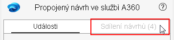 v pravém dolním rohu grafického okna. Na panelu sdílení návrhů ve službě A360 se ve výchozím nastavení zobrazuje karta Události. Vyberte kartu sdílení návrhů.