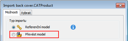 Podobně jako možnost Převést model, popsaná výše, operace importu v případě těchto typů souborů nezachovává asociativitu s původním souborem. Tyto typy souborů mají k dispozici další možnosti importu.